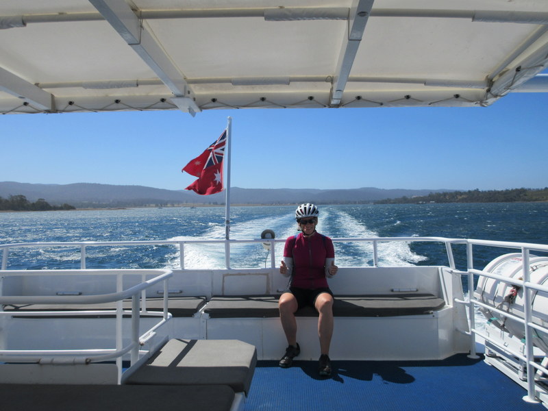 From the top of Bust-Me-Gall it was supposed to be mostly downhill but it was a bit lumpy in fact. We had some headwinds as well but there were no complaints as we were loving our blue ribbon day. It wasn’t long before we rolled through Buckland and onto Orford where we stopped for a coffee and snack. From there it was only 7k to reach Tirabunna where we were catching the 3:15 ferry out to Maria Island.