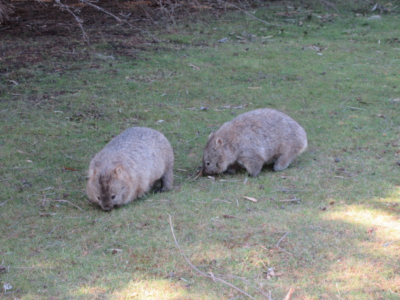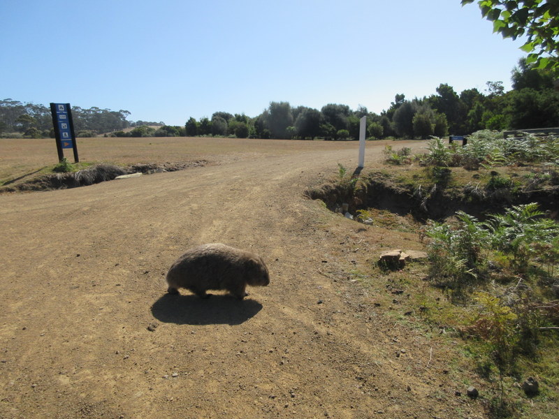 Last time we were here we caught a glimpse of a wombat at dusk, plus saw a bunch of pademelons and other small hopping things. Well this visit, let me tell you, it is wombat city. We saw one on the walk up, took a thousand photos and now have them virtually walking al around our campsite. It’s wombat city! Just 4 hours after getting here, we don’t even get the camera out when we see one – ho-hum. When we first reached camp we told a couple of campers that were already here about the wombats. They looked at us like we were idiots. Now we get it – funny.