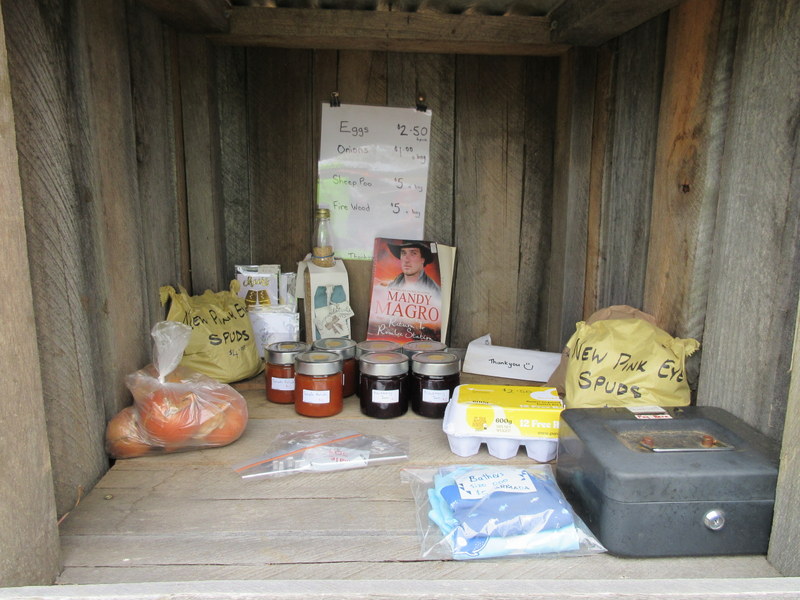 As for the ferry, we got to chatting with other passengers on the ride back and before we knew it, we reached Triabunna. It helped immensely that seas were calmer as well – much better than the sail over. It took us a while to get everything repacked on the bikes and it was close to 11AM before we were ready to roll – so, what else to do but stop for a coffee and snack in town. We left town heading north with strong winds pushing all the way to Swansea.