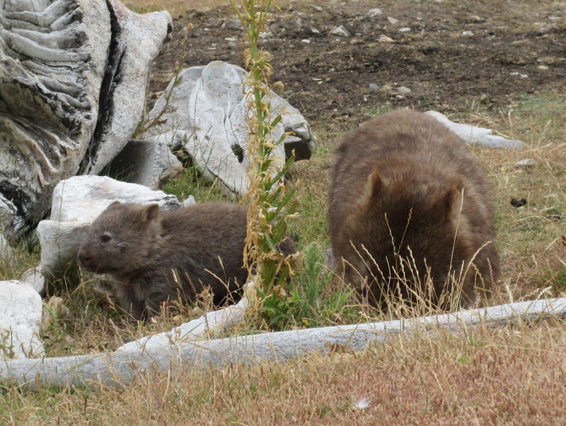 Then finally this morning, we got one more wombat show. We were the first two people to reach the ferry dock and just as we arrived, a mother wombat and joey, this time an older one outside the pouch, were working their way back to their den right under the waiting area for the ferry. We got some photos then watched the pair disappear down a readymade den in a big drain pipe. Eventually lots of other passengers arrived and began milling about. We chuckled about the pair hiding within metres of the crowd, feely slightly smug knowing what we knew.