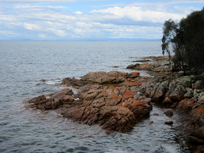 While I typed these notes, Dave went down to the store for dinner supplies and yes, he found a nice ale take-away at the pub. It took him a long time – I guess because he wandered down and took more photos of the stunning red rocks of Big Oyster Bay. His photos are nice but I think he might have actually been in the pub watching cricket for at least part of the time he was away. India is playing Australia in Adelaide and when Dave sees it on TV it is like a magnet – I know, weird.