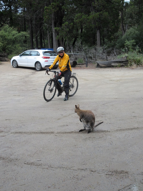 Not bad for a rain day! Nice views everywhere. Kangaroos seem friendlier in Tasmania…