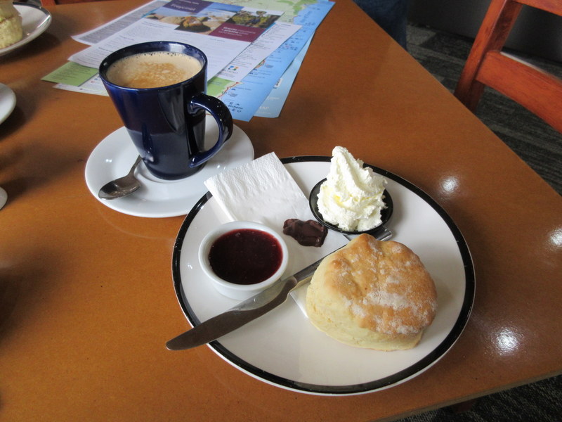 We stopped for morning tea at The Pondering Frog cafe and ice creamery. The guy running the place, Lester, met us at the door and took our coffee orders and got fresh scones sorted. When he finished making the coffees, he came over with local maps and gave us the skinny on our next four or five days of travel. Lester gets full marks for being super keen and very knowledgeable about the area. We plan on stopping at the Frog on the way back out of Freycinet – hopefully it will be warm enough to sample their ‘best in Tasmania’ ice cream.