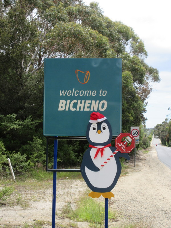 The ride from the Frog to Bicheno seemed to be over before it started and that was it for the day’s riding – phew, didn’t even break a sweat. We pulled up at the Bicheno Backpackers Hostel to see how it looked and if they had rooms. The gal working the hostel was nice and we scored a bunk room all to ourselves for a good price. Sold. It wasn’t even 1PM and we were showered and ready to hit town.