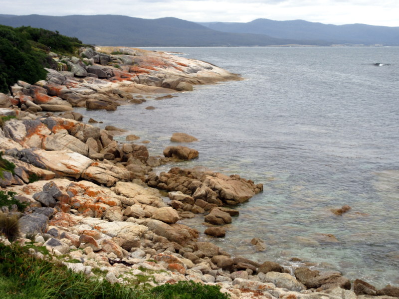 We had mostly blue skies in the morning but it was still hard to pull ourselves away from the lovely cabin we nabbed for the rainy night in Coles Bay. Check-out was at 10AM and it took some work to get Nancy on the road much before that. She wanted to get every minute of her “cabin time”.