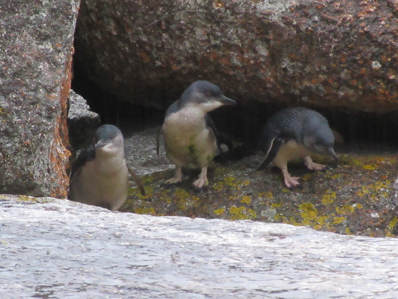 After dinner at the hostel, we had one last mission for the day. We strolled back down to the waterfront to watch the local colony of fairy penguins return to their burrows for the night. We arrived way early as it turns out that they don’t come back until well after dark. Luckily however, we found a place to wait where a group of five chicks were waiting as well. We got a few photos but didn’t want to get too close for fear of bothering them, or stopping their parents from returning. By the time the parents started coming back it was too dark for photos and you could hardly see them with the naked eye. We might have seen more had we hired a guide but we were pretty happy to see anything at all actually.