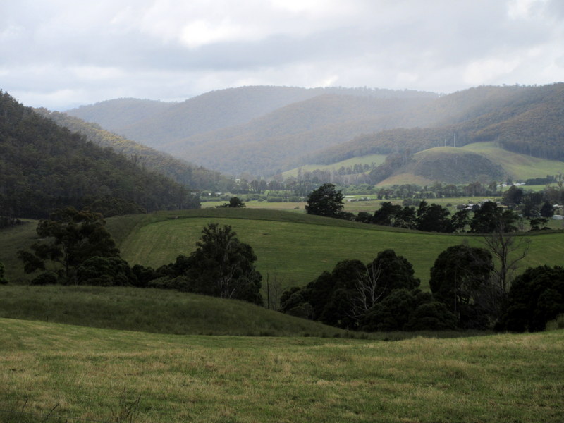 Our route took us away from the coast heading inland, more or less cutting across the north-eastern corner of Tassie.  Since we were leaving the beach, it makes sense that we’d be going up but honestly, neither of us expected the sharp climb we encountered just as we exited St Helens city limits. We were in granny gears there and for a good part of the morning.
