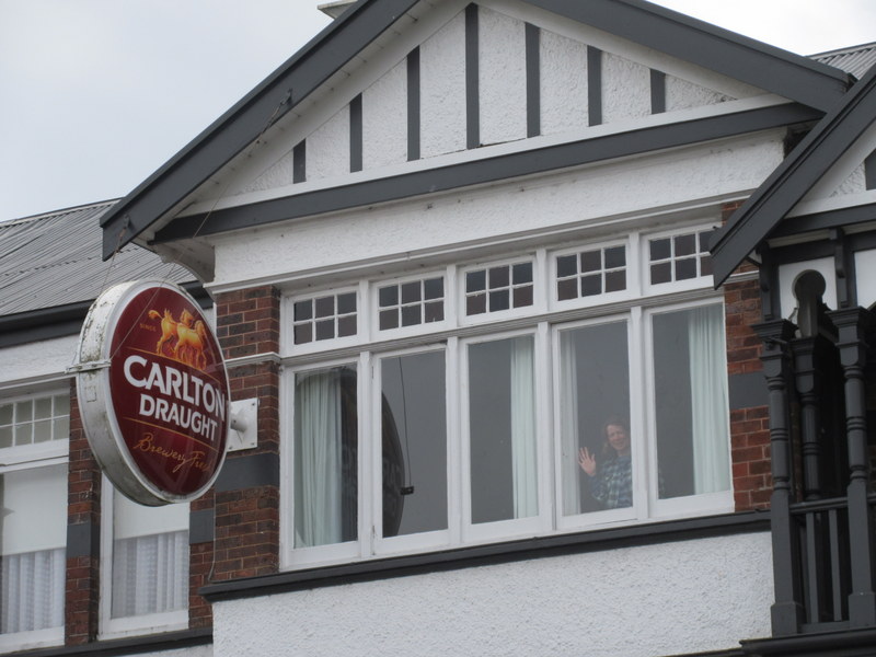 In town we rode straight to Lords Hotel and given that it was my day to check rooms, we got the cheap room with shared bath. To be fair, the hotel is empty and I talked to owner into giving me the family room. The room is quaint with big windows looking east where we came from today. To complete the whole pub experience, we have a giant Carlton Draught beer sign in our window. It’s pretty average beer and we can only hope that the sign is not too bright and/or they don’t leave it on all night. Their fancy “motel style” rooms are almost twice the price and half the charm (that’s my story anyway) (Senior editor’s note – no surprise what room we ended up in when Dave goes in to check. Let’s see if the story of “there’s no one here, it will be quiet” works out later on. And I’ll be sure to wake him up when I have to get up in the middle of the night to trek down to the far end of the hallway to find the bathroom!).