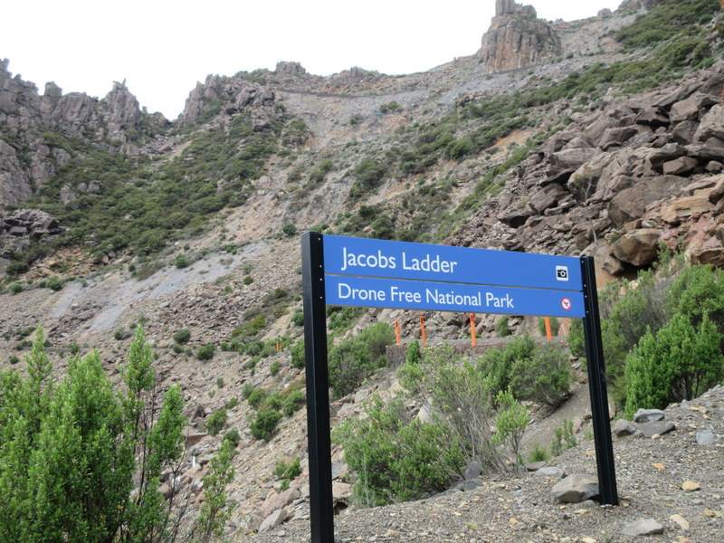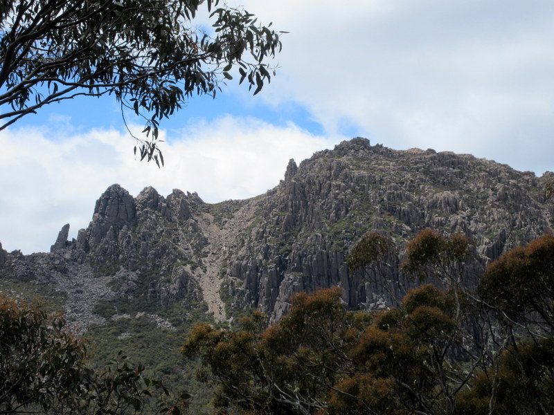 From just above the park gate to Jacob’s Ladder through the trees we got ever improving views of the rocks above us. Then at the official start of the Ladder, we were out in the open with full views of the stunning million year old vertical rock columns made of dolerite. At the top it is an alpine region, full of low shrubs, many of which were blooming from the recent rains.  It is apparently a popular climbing area, though the rock seems like it would break off quite easily, as evidenced by the scree fields at the base of many of the columns.