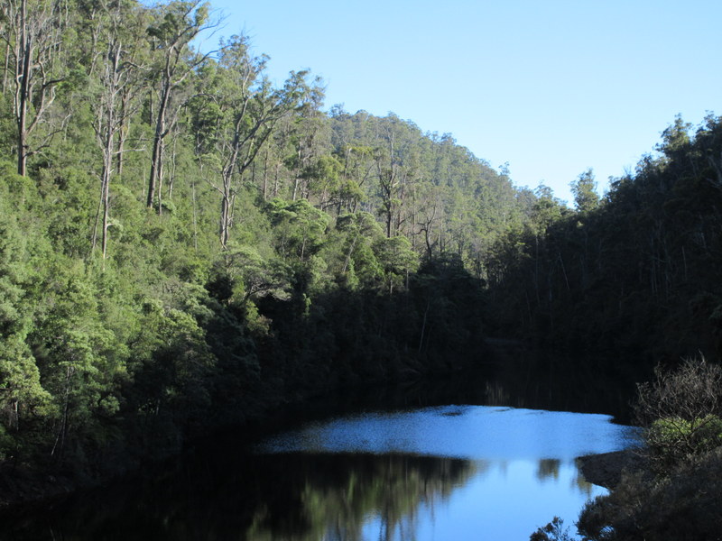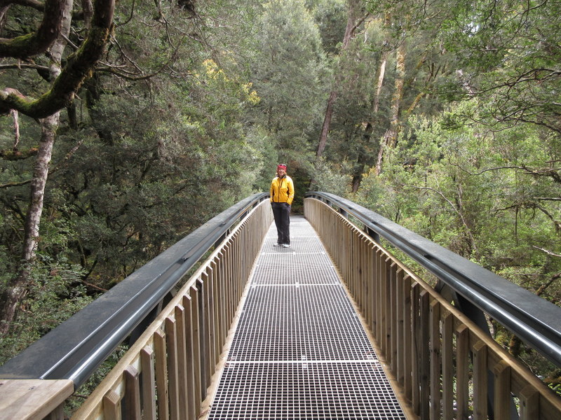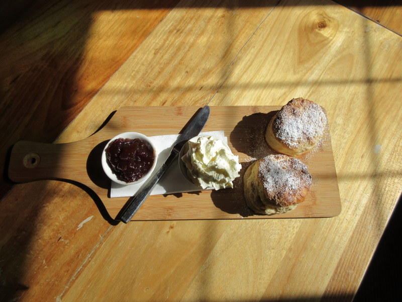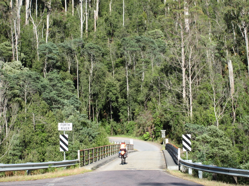 The 5k downhill to the River Forth was fast and pretty steep. We had to climb 5k of equally steep to get back up the other side. It was nowhere near as steep as yesterday’s climbs but our legs were still stiff from yesterday. It was just slow and steady. At the top of the climb we joined the main road into the park and picked up a little more traffic. We’d only travelled 15k at this point but decided that morning tea was in order, stopping at the Cradle Forest Inn – everything out here is called Cradle something or other.