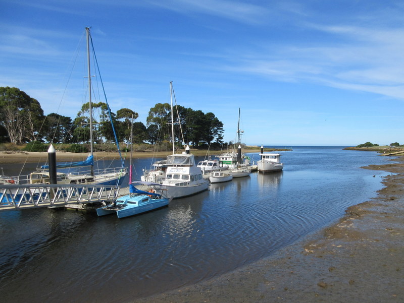 Once we got cleaned up and the tent set up, we strolled up the boardwalk into town and the local fish and chips shop on the waterfront. We had salmon and blue travella – must be that the blue travella is in season as everyone is featuring it. We headed across the street to a pub for a cleansing ale after dinner but they only served lagers on tap. We were both looking for an IPA, or nothing. I think we were too tired to have a beer anyway so we’ll save up for tomorrow.