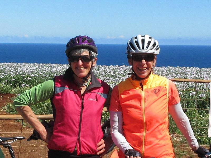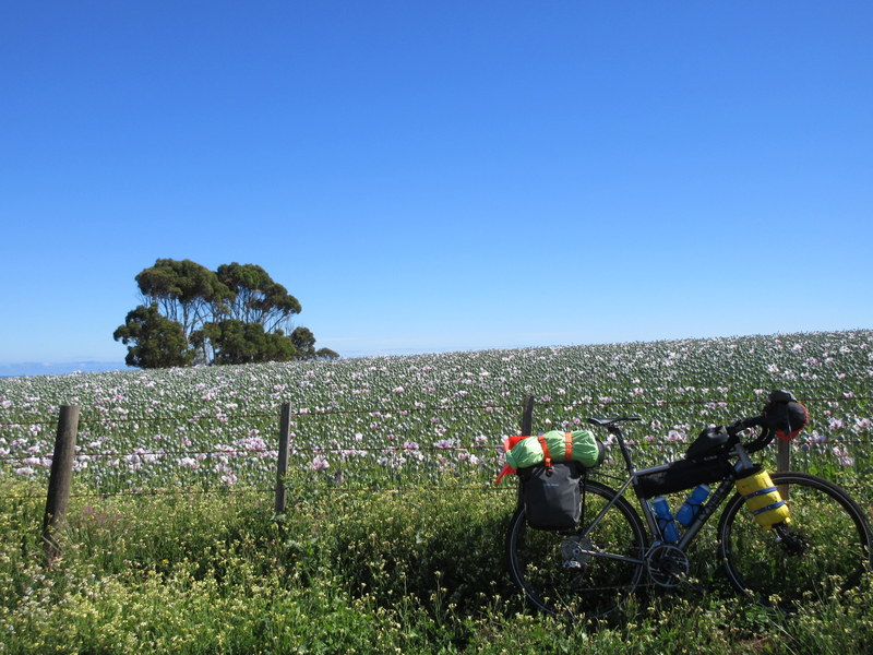 We stopped with Ali at one of the most scenic places on the coast. The Bass Strait was bright blue today, the sky was bright and right where we stopped there was a field of those super photogenic medical poppies. Cameras were passed around once we got over the excitement of our serendipitous meeting.