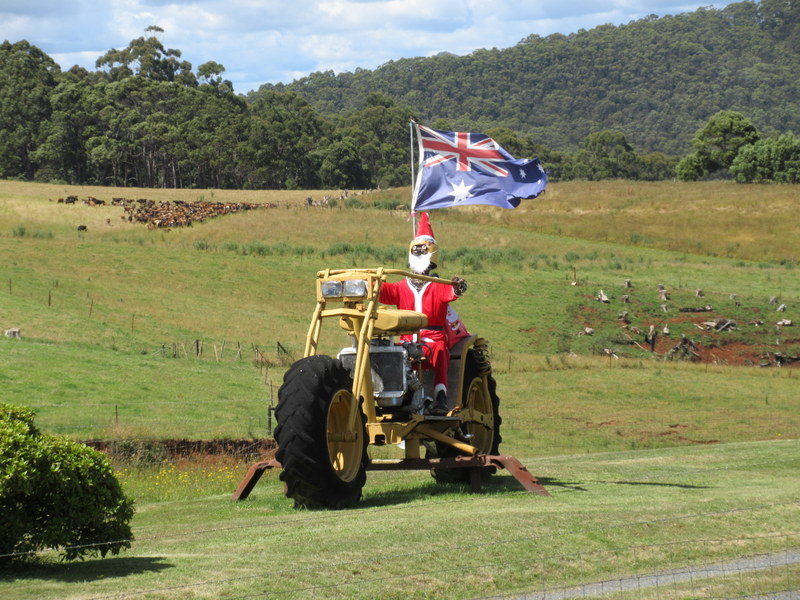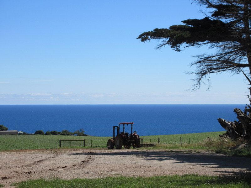 We had a few climbs in the first half of the ride but as we were on the Bass Highway, they were all more or less gentle. There was quite bit of traffic and a surprising number of big milk trucks. We learned later in the day that the biggest dairy (Van Diemen’s Land Dairy) in the southern hemisphere is located up the road in Smithton. The trucks were mostly polite but in a few places there is just no shoulder. We were happy that all of the drivers in these sections slowed for us. We were sure glad that we had our rear-view mirrors.