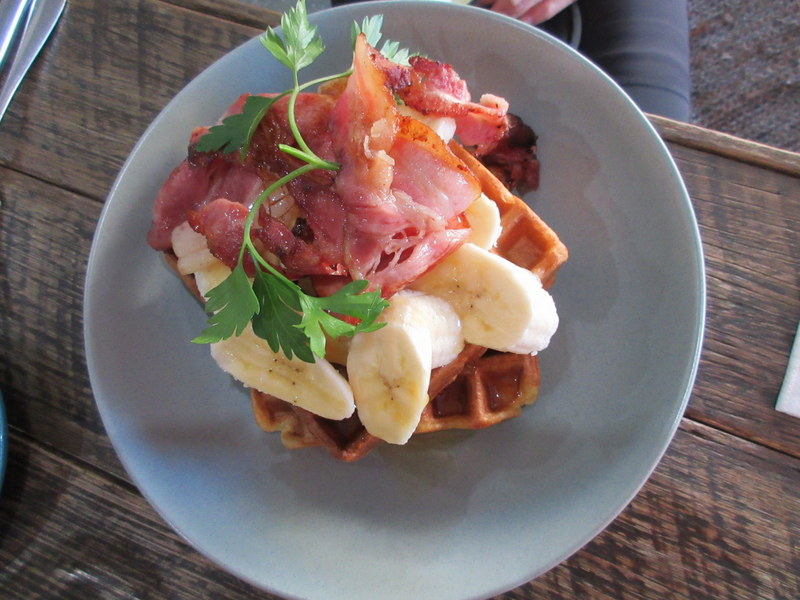 On the advice of the caravan park owner, we locked our bikes in the laundry overnight. This meant that we couldn’t get access to them until 8AM this morning. We loaded the bikes and rode into town for a cafe brekkie just passed 8AM. We’ve been on the oatmeal for almost the whole trip and needed a break. We ended up at a cafe called Cafe Umami and were served two very tasty meals and some great coffee. The cafe had a paleo focus – I’m still not sure what that is – but whatever, the food they served us was delicious.