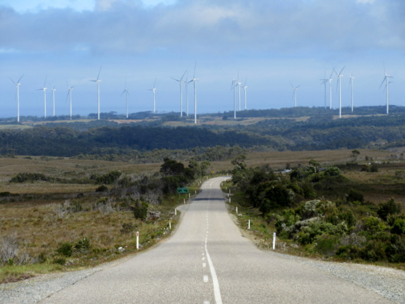We had almost no traffic today again. There was one car out from the ferry, then no more for a long spell. We ended up counting four cars for the entire day, which has to be some kind of record – for those keeping track. We thought we’d get more traffic after we left the Tarkine Forest, out on the main road C249. But other than a couple guys from the nearby wind farm, it was virtually car free.