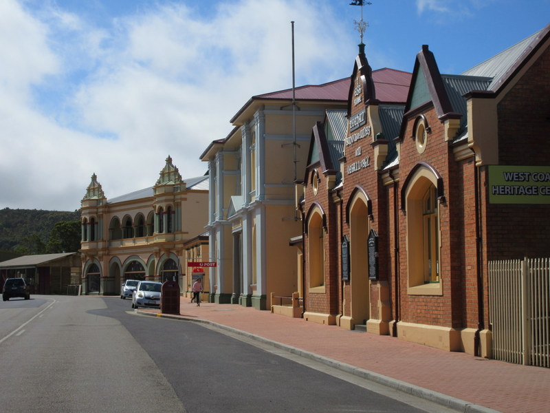 Zeehan is an odd little town. It is/was a mining town but clearly it has seen better days. Many shops and businesses in town are boarded up and there are many buildings for sale. Many of the houses appear to be almost abandoned.  We learned from a gal at the store that some of the mines are still going but that a few had closed. Clearly, those that are open require fewer workers than they used to. Population today is 728, in 1910, it was over 10,000. There is a pioneer museum here that gets great reviews but we ran out of time this arvo and had to settle just walking around and looking at the old buildings – still a fun exercise.