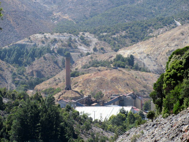 Riding out of Queenstown there is big climb over an infamous hill. All of the vegetation on the hill was lost through years of sulphur dioxide smoke pollution from the copper smelting done here. For locals in the mining days, the smoke billowing out of the stacks and the barren hills used to be seen as a sign of wealth and “getting ahead”. My, how times have changed. There is no active smelting these days and the vegetation is coming back on some of the surrounding hills – perhaps costing the town a macabre tourist attraction.