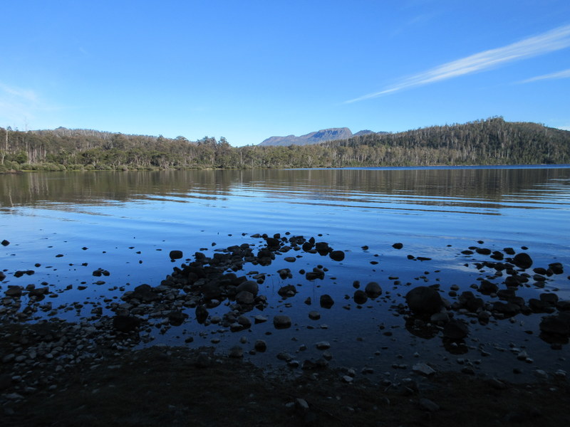 We still managed to get up the regular time and be first out of the campground by 8AM. Our first stop of the day was back to the lakeshore for more mountain photos. The photos below probably look a lot like the ones we took last night but trust me, the light is different. And Lake St Clair is so photogenic. I should also note that we had perfect blue skies again this morning, only today, we near really got the cloud build up – lucky us, we got to see Cradle Mountain from the south two days in a row. I guess that it’s not all that common.