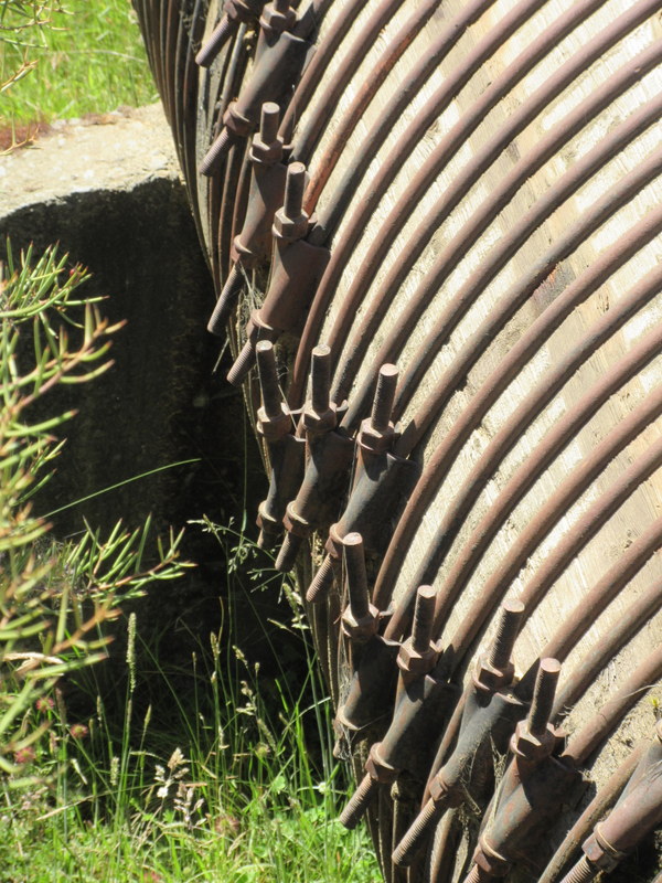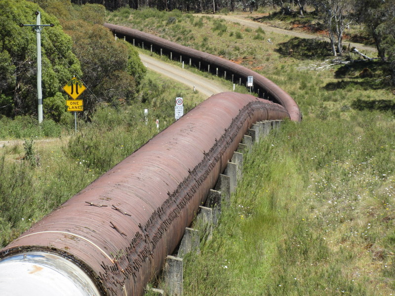 On Fourteen Mile Road we crossed one of the big pipes used by Tassie Hydro to move water around for their dams and power stations. We’d heard that they still use wooden pipes but were surprised the by scale and condition of the pipe we encountered. They clearly wouldn’t use these types of pipes today. When we get connected to the internet, we’ll have to see what more we can learn about them.