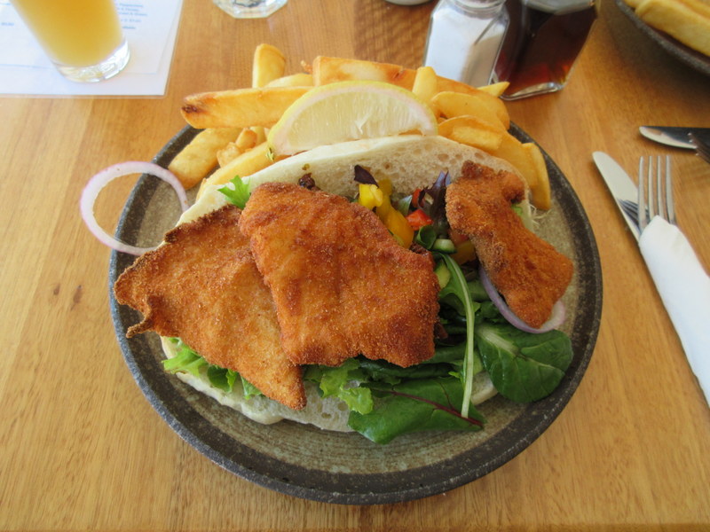 We had a second coffee at the Adventure Bay store, got caught up on our blogs and talked about what else to do during the day. Checking the forecast, clearly today was going to be the day for a hike. We decided to walk down to the end of the road and the small berg of Cookville where there is an adventure tour company with a nice new restaurant. It took us a while to get there so we grabbed an early lunch of fish burgers and Nancy twisted my arm into trying one of the other Island beers – a tasty Farm Ale.