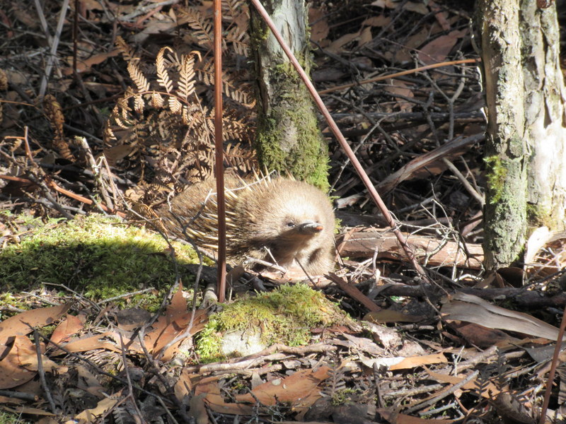 While walking out yesterday we ran into one of Anne’s neighbors. Both the neighbor and Anne warned us about snakes. We didn’t see any snakes but we did encounter a couple echidna. The first spotted us but didn’t seem to mind our presence. We spotted the second one going up to Fluted Cape. Before he noticed us we stopped and remained completely still. Oblivious to us, the echidna walked right towards and past us, all the while foraging on ants and snorting. We took some photos but stopped at some point and just watched – such an unusual animal.