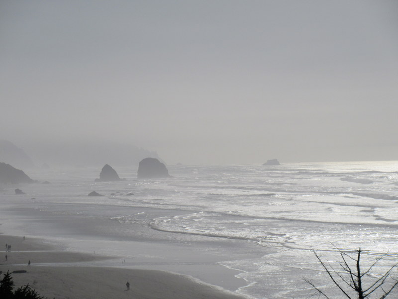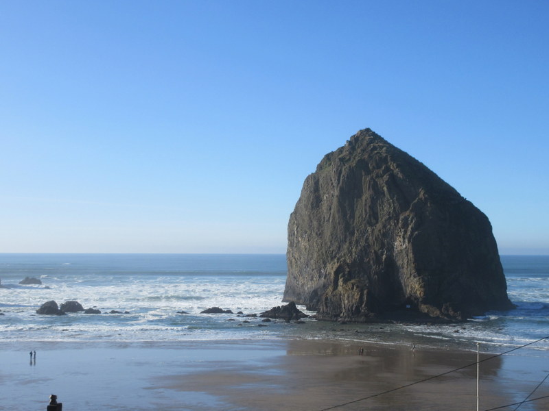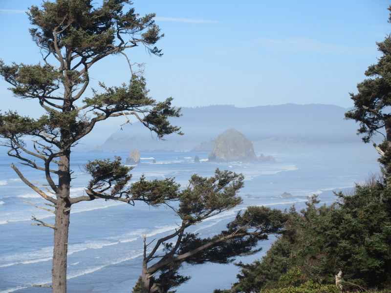 From the wreck, we headed the more direct route back south towards Seaside generally following Highway 101. To get off the busy 101, we took as many side roads through southern Warrenton and Gearhart as we could find. We had to stop and check the phone a few times but getting off the busy road was worth it. We were thinking of stopping for lunch in Seaside but ended up on the malecon (boardwalk) where there was no traffic and fewer cafes – definitely worth it. We blasted through to the far side of town and further south to Cannon Beach for a proper coffee and lunch. All of the normal cafes were out of food or closed (it was Monday) but we managed to score two of the last ciabatta roll sandwiches at the last cafe in town. We enjoyed a lovely sunny lunch on a bench in nearby Tolovana Park.