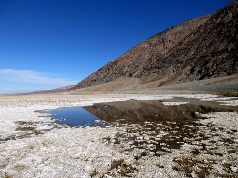 With Death Valley being below sea level, you may be wondering how water gets out of the valley. Wouldn’t the valley just fill up when it rains? Well, it barely rains here- just 1.5 inches (38 mm) in the average year – mostly it is very dry. It is not unheard of to get the rainfall of two years in a single storm causing massive flooding, gully-washing runoff and lakes in the valley low points. Over the millennia, the water in the lakes evaporated leaving mineral and salt concentrate dry lake beds. I’m sure if Death Valley weren’t a national park Elon Musk or some other squillionaire would be digging up things and making more billions here. For us, we’re glad it’s a park – keeping some places as we found them has to be good for mankind.