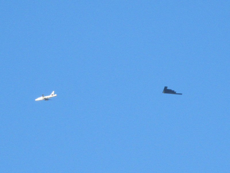 Shhhhhhh…. Top secret flyover of a stealth fighter, 7AM at campsite, not sure what the white plane was doing