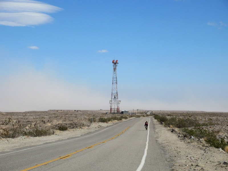 One step outside the van at Salton Lake and Plan B quickly became Plan C. The route to Borrego Springs was pretty much into the teeth of a strengthening westerly wind. The new plan was to drive to Borrego Springs, let us ride back to Salton, with the wind and then get picked up by the van to make our final way to Borrego. Nancy and I liked Plan C, as did the rest of the group. And to be fair, had Nancy and I been on our own, we would have just called it a day without riding and stayed in the casino another day. Our guides, Jason and Jerry, really made all the right calls today – well done guys!