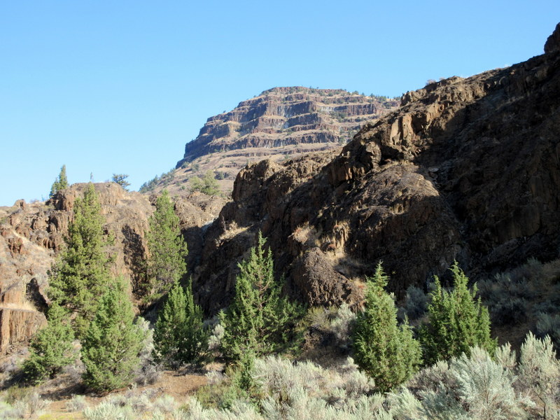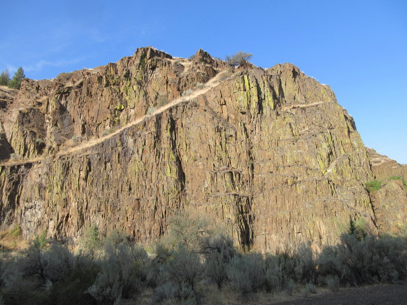 And while Highway 207 was very scenic today, part of yesterday’s route on Girds Creek Road through Black Canyon was even more spectacular. The canyon was quite narrow with Girds Creek cutting a deep narrow path through the Columbia River Basalt. We didn’t quite have the early start riding we hoped for but the sun had yet to reach the bottom of the canyon in many places even with our tardy departure.