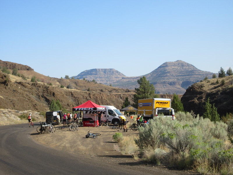 The normal Cycle Oregon riders had to ride the same canyon twice but don’t worry if that sounds boring. At bike speeds riding the same road in different directions makes it almost seem like two different rides. In fact at the morning tea stop at the bottom of the canyon, one of the riders we spoke with swore that they did not ride this road yesterday. Maybe he was just tired from the week’s efforts.