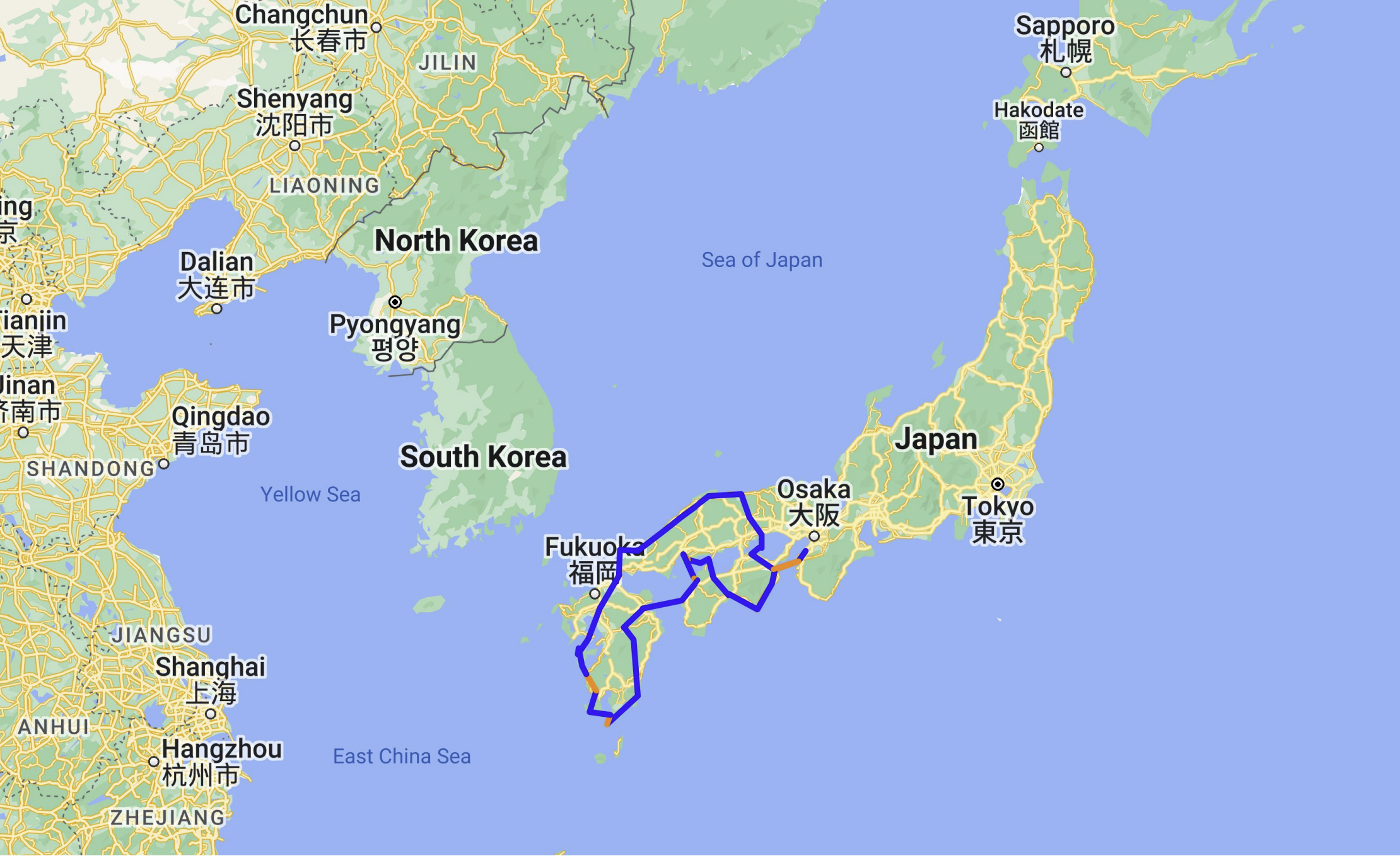 The general plan is to fly into Osaka, the ride south through parts of Shikoku Island, including the well-known Shimanami Kaido cycling route across the various small islands between Shikoku and Honshu, and then head down and ride around the southern island of Kyushu. We’ll then work our way back up to Osaka, taking a different route to avoid repeating roads. That’s the plan anyway – we’ll see how weather and terrain may change things when we are on the road! Dave’s done a map of the route, though because Google maps doesn’t offer cycling as an option in Japan the map is done using the walking option. We’ve got about 7 weeks to spend in Japan and a little bit of play in the plan so we may make some adjustments as we go.