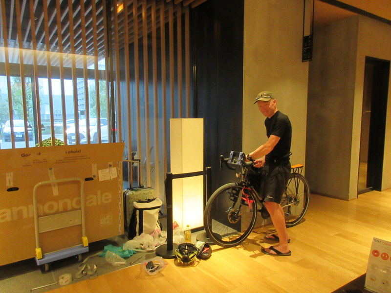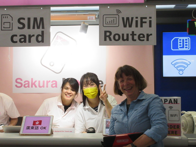 Both of our flights featured new and squeaky clean planes. At least the airlines got the Covid equals clean memo. Unfortunately on our 11-hour fight to Osaka the entire entertainment system was out. In the old days this happened to us and the airline gave us 10,000 air miles each as compensation. In today’s profit first focused world, I’m not expecting much more than a complimentary bag of pretzels – time will tell. It should also be noted that these modern airplane entertainment systems control overhead reading lights and call buttons. We travelled really old school with window shades up or down for light and a flailing arm to raise a flight attendant. I asked one flight attendant about the system and she gracefully suggested that I should have downloaded a movie to one of my devices before boarding, or that maybe I should have brought a book (never mind the no reading light part). Another rookie move by me I guess. Before someone asks, the front of plane business section entertainment systems were working – I was so very relieved when I learned about that – phew.We (mostly Nancy) were worried about getting our bikes from Kansai International to our hotel in Osaka. We needn’t have worried. Within an hour of landing we had cleared immigration, gathered our bags and bikes, cleared customs, picked up our pre-ordered SIM, got the phone working with said SIM, found a big taxi van and rode to our hotel. Do that in any major city where you don’t speak the local language.