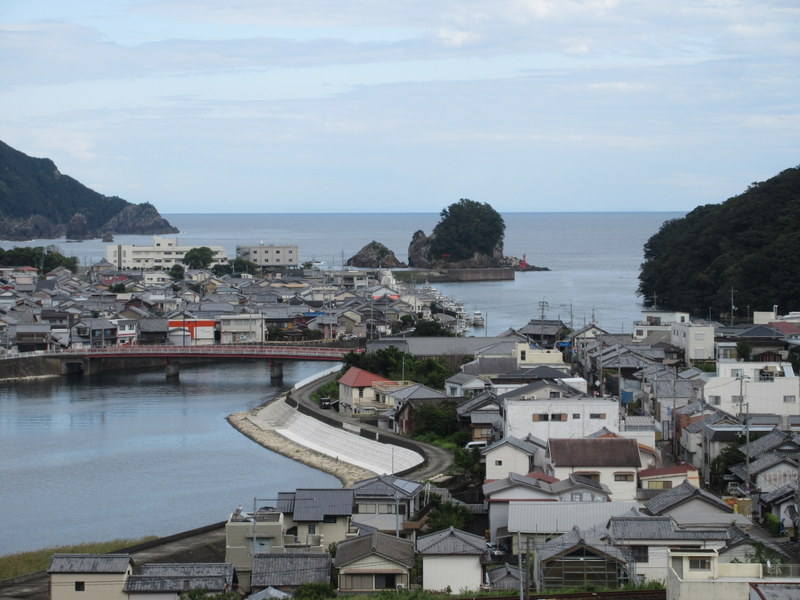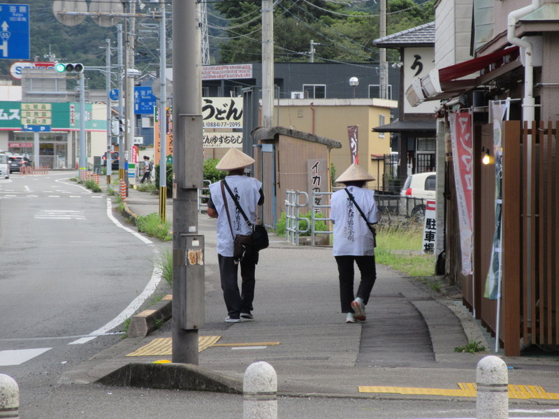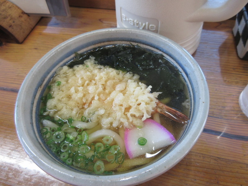 The motorway ended at Minami (old name Hiwasa) and suddenly there was some traffic again. It didn’t matter now, however, as we had reached our destination for the night. The main street in Minami was full of many restaurants advertising udon (Nancy is teaching me the Japanese characters). We were too early to check-in to our guesthouse so we had a late lunch and a nice bowl of udon.