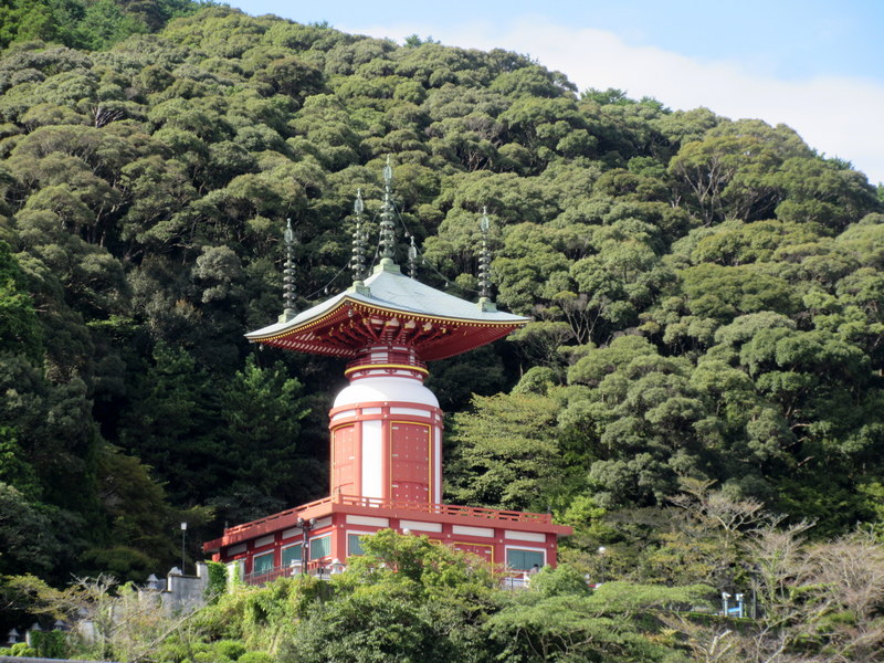 After lunch we still had an hour to kill so we decided to visit the Yakuoji Temple – the most famous landmark here in town and one of the 88 temples on the Shikoku pilgrim walk. Yakuoji is a Buddhist temple known across the country as the temple where you go to pray to ward off evil spirits. It was very well maintained and quite impressive, though we definitely stood out from traditional pilgrims in our bright bike clothes.