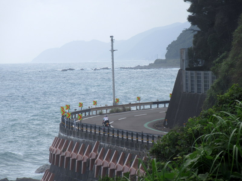 After the rest stop, the road got even closer to the sea. There were no more bays and inlets, it was straight shoreline with mountains coming right down to the sea. The road was basically built on viaducts and sea walls barely hanging onto the mountains and giving us the feeling of riding the waves. A nice tailwind blew us along a great pace. It really is hard to imagine a more scenic or enjoyable stretch of road to ride.