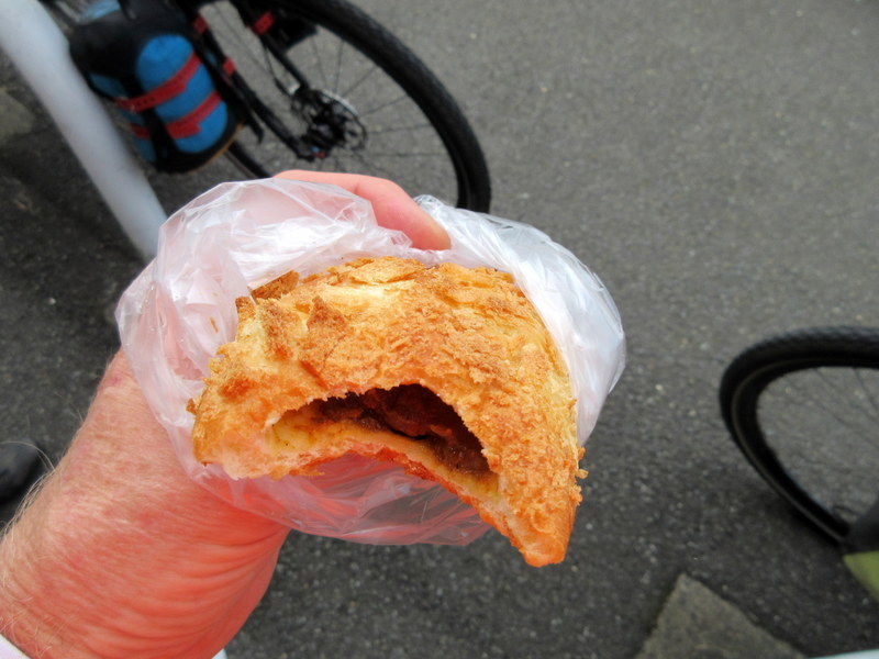We stopped for morning tea in Mugi, a small town at the end of Highway 147. We had found a bakery online and decided to give it a go. It was charming and the baker very entertaining, however, we had a bit of an odd choice with regard to the treats I picked out. The first one was some sort of curry filled roll with a crunchy cornflake covering. If it sounds odd, you guessed right. Tomorrow, I’m sending our expert Japanese speaker in to pick out the treats.
