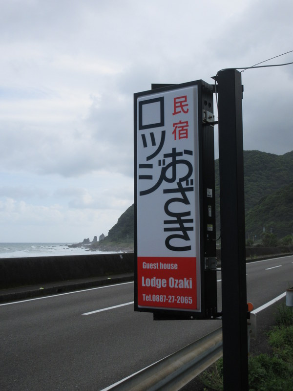 We could see that our speed would make us too early for check-in at our guest house (the Ozaki Lodge) so we pulled off the highway into a small unnamed town for an ice cream. In front of the market we met Josephine, a Danish lass who is hiking Shikoku Henro, the pilgrimage to visit each of 88 temples around the island. This is the famous pilgrimage and those doing it are referred to as Henro . We had a nice visit with her then discovered that she is also staying at the Ozaki Lodge tonight. We got here quicker as she “had” to walk while we surfed the last 3k down the coast.