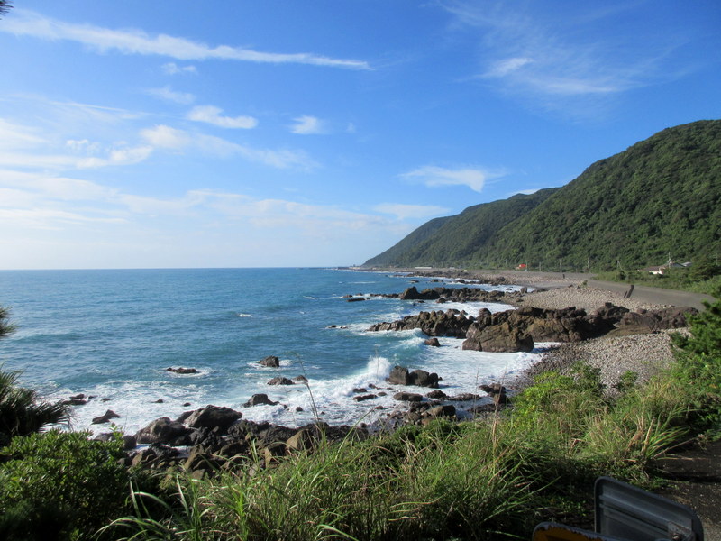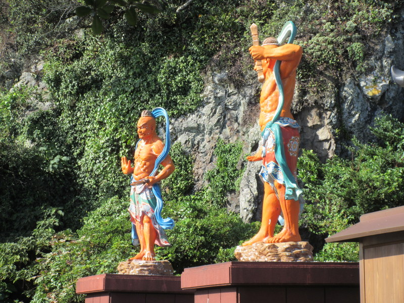 We had 16k to ride to finally reach Cape Muroto. The road was a repeat of yesterday – right along the coast with lots of nice views. As we neared the cape there were a couple shrines to distract us as well. I’d have to say that other than the first 20k, the 130k from Tokushima to the cape was one of the best roads we’ve ridden – if the rest of Japan is that nice, well, we’re in for a great ride. Bikes aren’t allowed on the last 100m to the actual cape but you can still get a nice view from the car park.