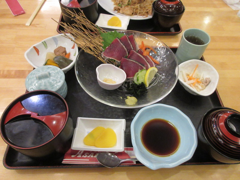 We had a small amount of city riding and lots of GPS checks to find our guest house – Lululu Guest House. It’s not fancy but sufficient and we are only here for one night. Kochi is known for skipjack tuna, or katsuo – a local delicacy from offshore where “quality” seawater is supposed to make the fish meat extremely juicy and slightly sweet. There’s a famous market that you are supposed to visit to try it out but after our long day in the sun we couldn’t work up the energy for the trek to the market. We opted for a small family restaurant across the street and of course, they had skipjack as well. It was pretty much as billed – quite tasty and very different to the tuna sashimi we’ve had in the past. We both agreed however, that the machi ice cream we had for dessert was even a bigger highlight.