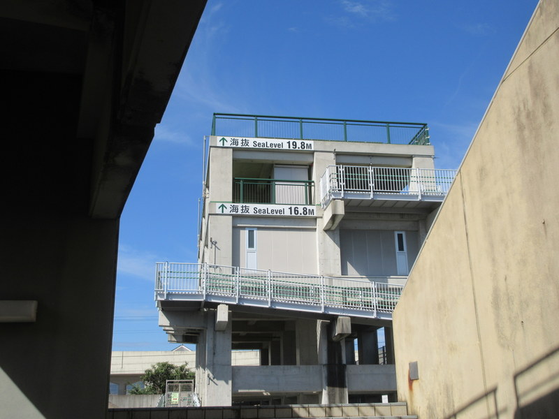 We leave the coast tomorrow so today I snapped a couple shots of Japan’s tsunami awareness infrastructure. From Tokushima until today, there are “meters above sea level” signs along the highway. Mostly they read in the single digits – you always know where you stand. Then there are the big stairways to tsunami safe platforms. Some of the platforms were in the neighborhoods of old homes. Boy, it would be sad to be up there and watch a big wave come through and wipe things out. But I guess that’s better than being down there when it happens.