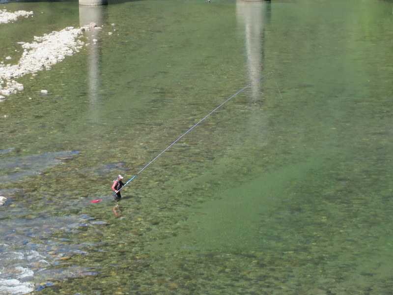 Pretty much as soon as we broke free from the city we turned on to Highway 194 heading up over the mountains. “Up” is a stretch as for the first 20k, while we were clearly riding up a river gorge, it was very gentle and we had a strong tailwind. It was pretty easy work, except it was heating up already so we were sweating. It was still cooler than the last few days though – you could really start to feel the mountain air.  The river was pretty wide down low and there were a lot of kayakers and fishermen about.