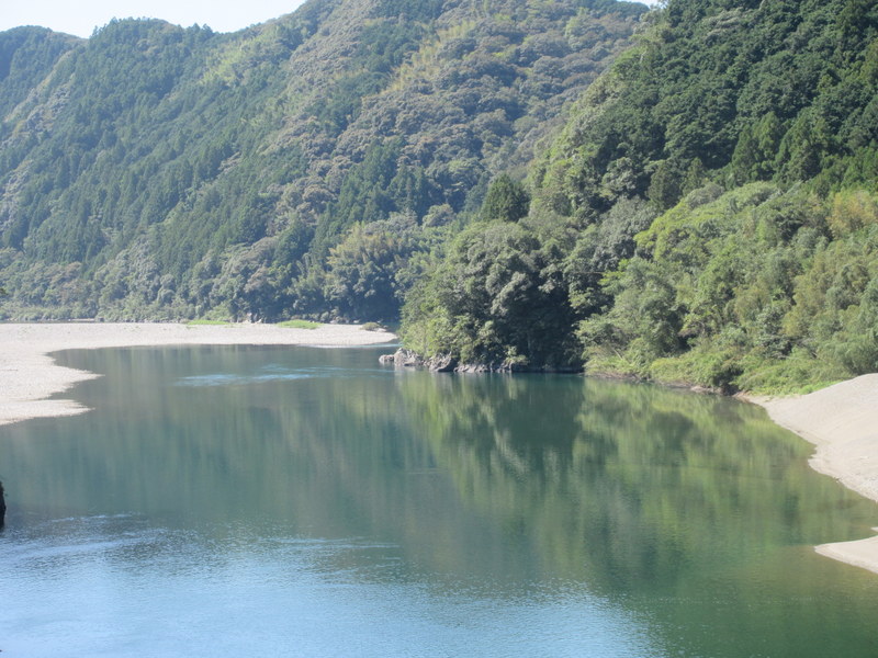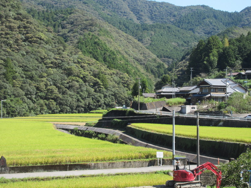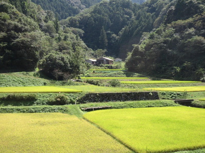 We are not sure what gorge we were in all day. There is a famous gorge that goes between Kochi and Matsuyama (Yasui gorge) but the road to Matsuyama turned off around 20k into out ride. We stayed with the 194 and wow, it was something.  Classic Japanese scenery with rice growing on terraced hills up off the river and little enclaves of houses set off the side where there was any room to build between the mountains and the river.