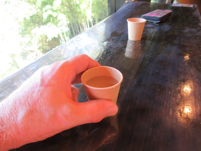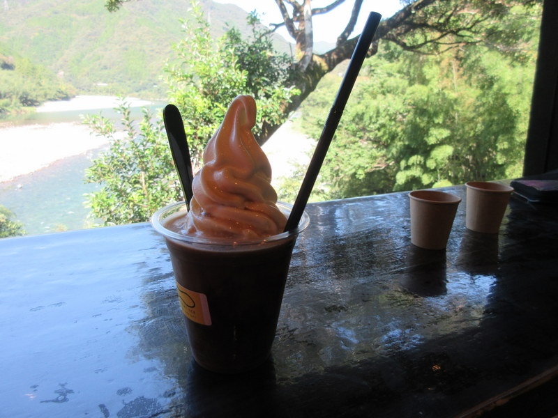 At the 25k mark we saw a cute building with interesting signs – turned out to be an ice cream shop. It was just before 11 and they only opened at 11 but we started chatting with an Aussie lass in the car park and we killed enough time to stall for the opening. It was so nice to hear a real Aussie accent. She was here with her Japanese husband and young daughter, visiting the in-laws.  We leap-frogged them up the gorge a couple times. By last time was saw them we were fast friends with their 4 and half year old (Hanna). As for our iced coffees, well, see below. No way we earned them by that point but they were worth it.