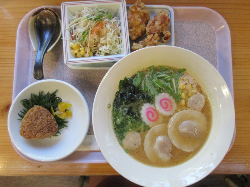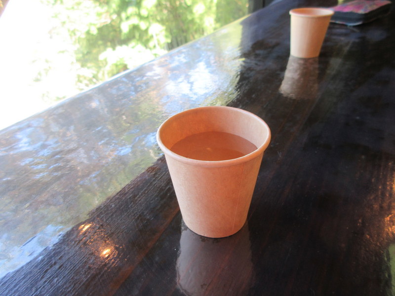 We arrived at Konoka Onsen about 2:30 and headed straight to the michinoeki restaurant.  We were both famished as we hadn’t really had any lunch – all of those baked goods remained in our bags while we climbed.  Two bowls of ramen and some extras hit the spot.  We then got checked in and a nice lady from the onsen came out to greet us (and I think mostly to be sure we were following proper footwear protocol!).  We were shown a good place in a hallway to store the bikes and took all of our bags up to our tatami room, which turned out to be surprisingly nice.