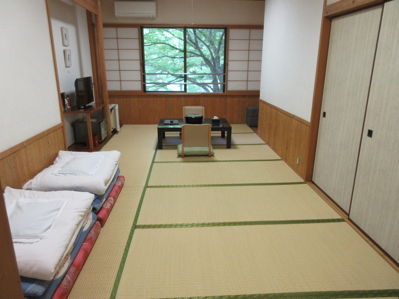 Our classic tatami room. The sitting area is for tea. Chairs are floor chairs. When we go to bed, we have to roll out the futons. You get good core workouts in Japan, gettting on and off the floor all the time.