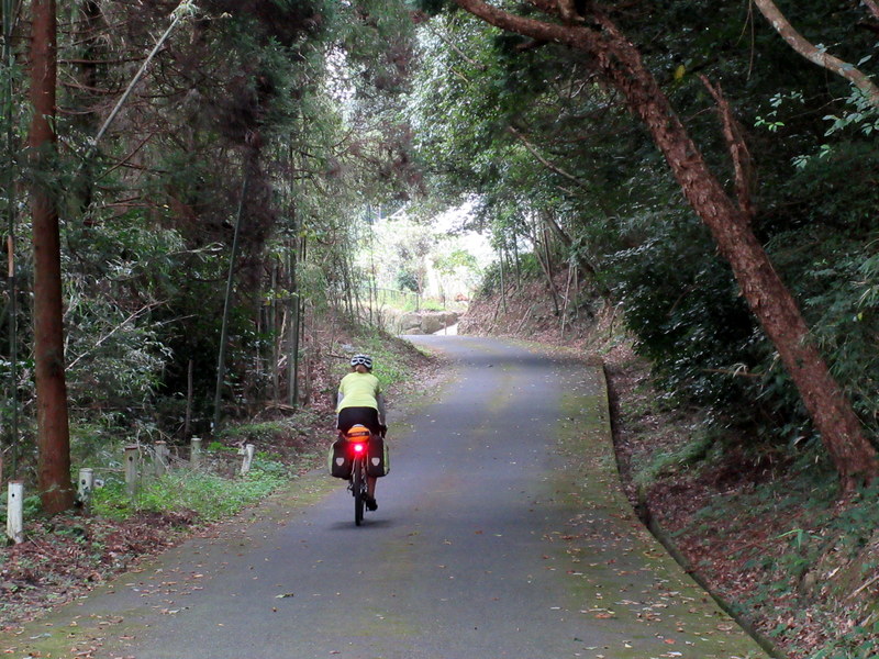 We’ve made it half way to Mt Aso and boy there was some steep stuff today. Nancy studied, maybe over studied, the route but no matter which Komoot option she picked, they all showed kilometres 2 to 5 being very steep. And today, Komoot did not lie. It was really steep. We had about 500 meters at 13%, followed by 2.5k at about 10%. I rode every fine inch (EFI). Nancy pushed the last little bit of the 13%. We were both puffing a storm by the top.