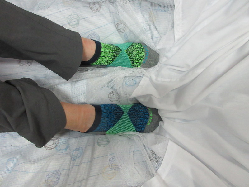 The best photo of the day, Nancy’s feet in her unmatching SolMate socks – they aren’t supposed to match, but more important in the train car, her feet were warm and dry