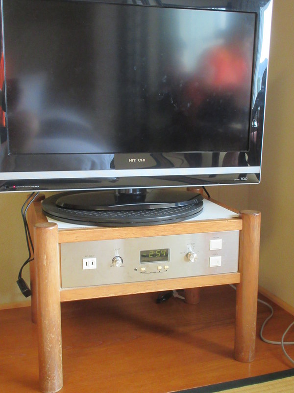 Hotel room flat screen and a table radio from the 1960s