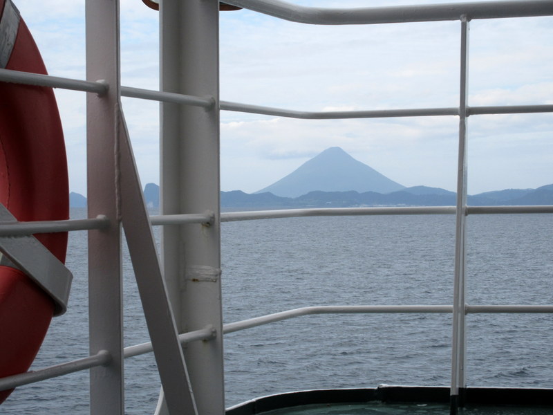 Getting closer to Ibusuki – with Mt Kaimondake looming